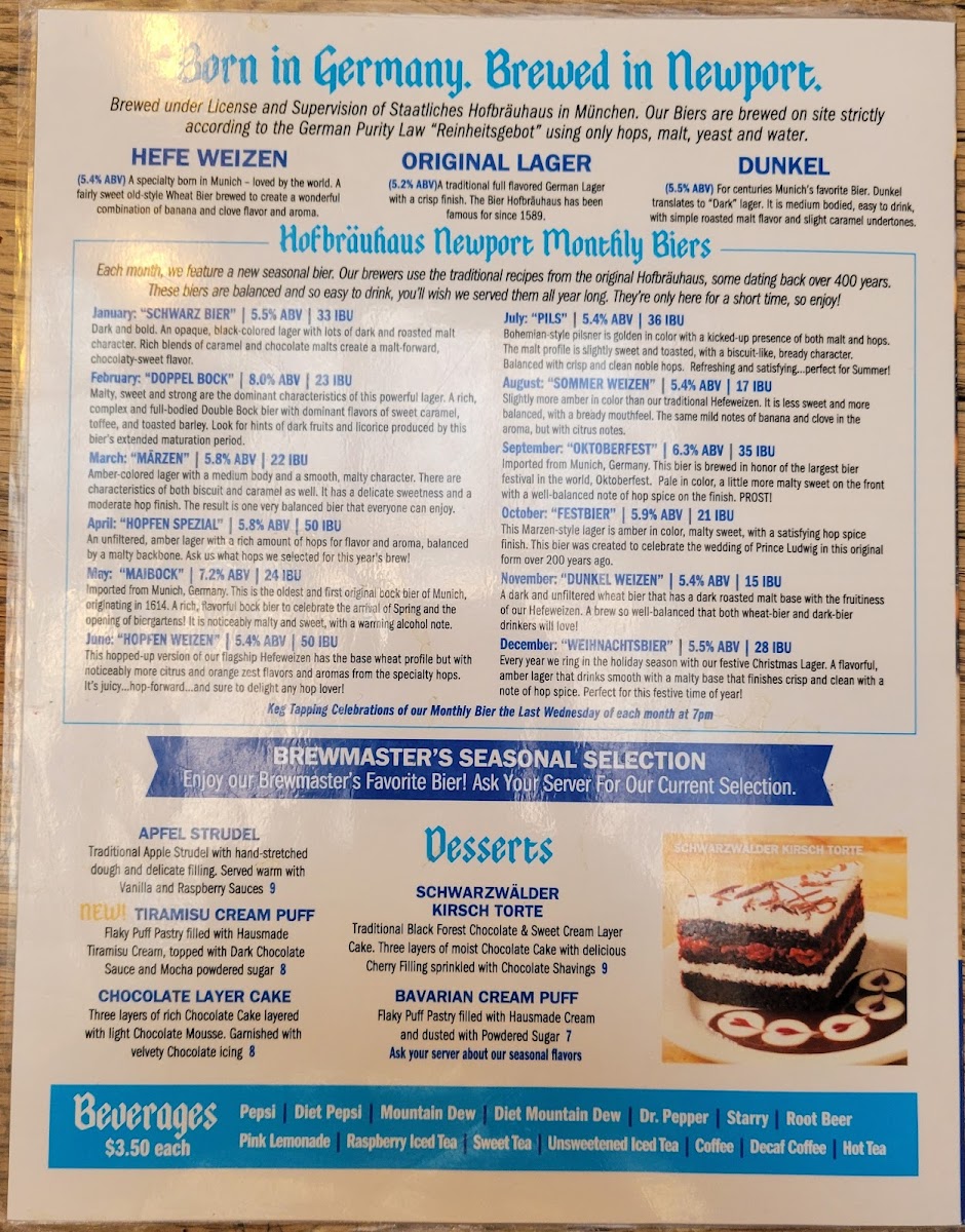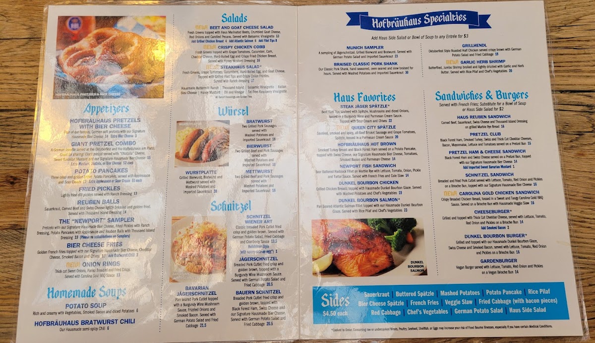 A German favorite served at the Oktoberfest and the Hofbräuhaus am Platzl. Great for sharing! Giant pretzel served with “Obatzda” Cheese, Sweet Bavarian Mustard and our Signature Homemade Bier Cheese