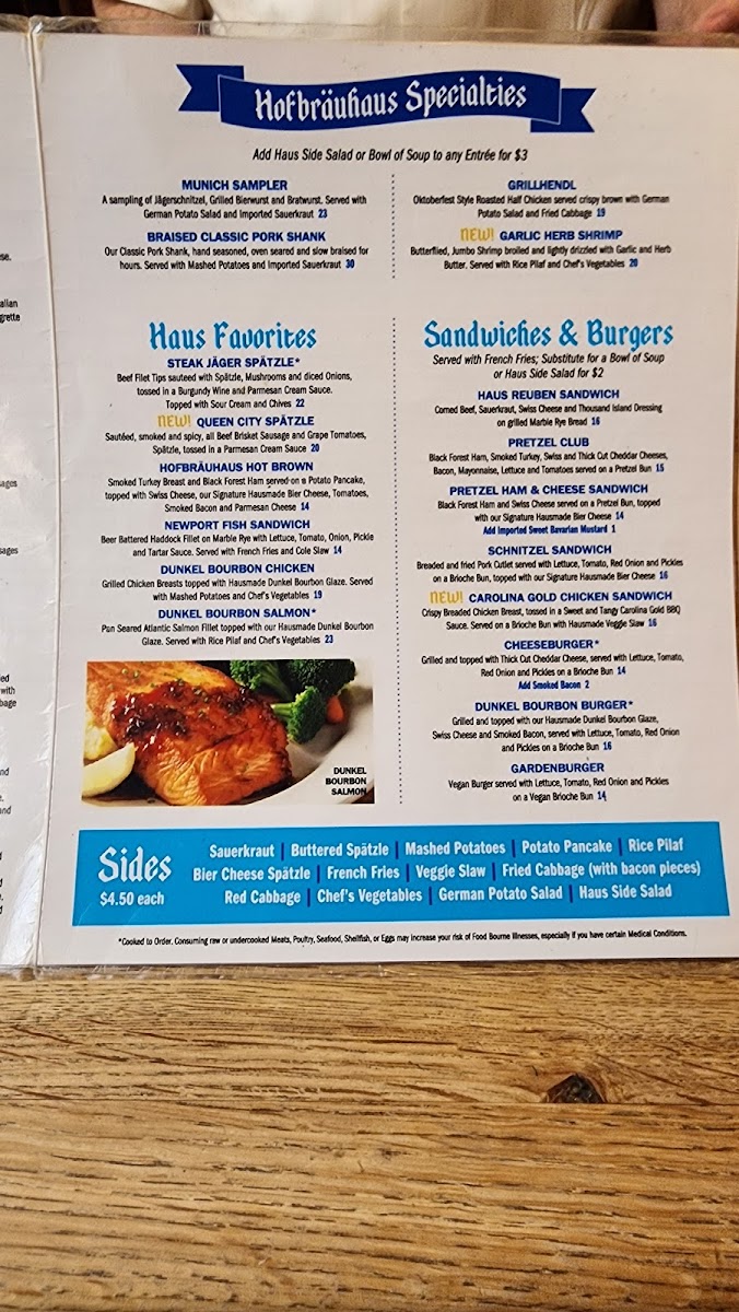 Breaded Pork Cutlet fried crisp and golden brown, topped with Black Forest Ham, Swiss Cheese and our Signature Homemade Bier Cheese. Served with German Potato Salad and Fried Cabbage